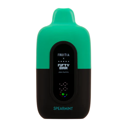 Experience the crisp coolness and juicy fruit fusion of Spearmint Fruitia x Fifty Bar 20K—your ultimate fresh vape companion.